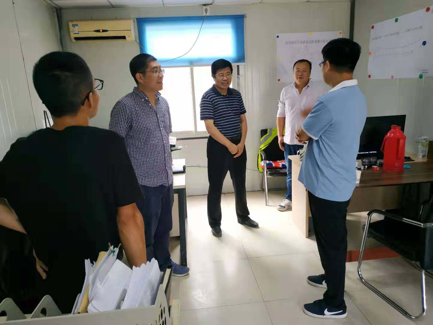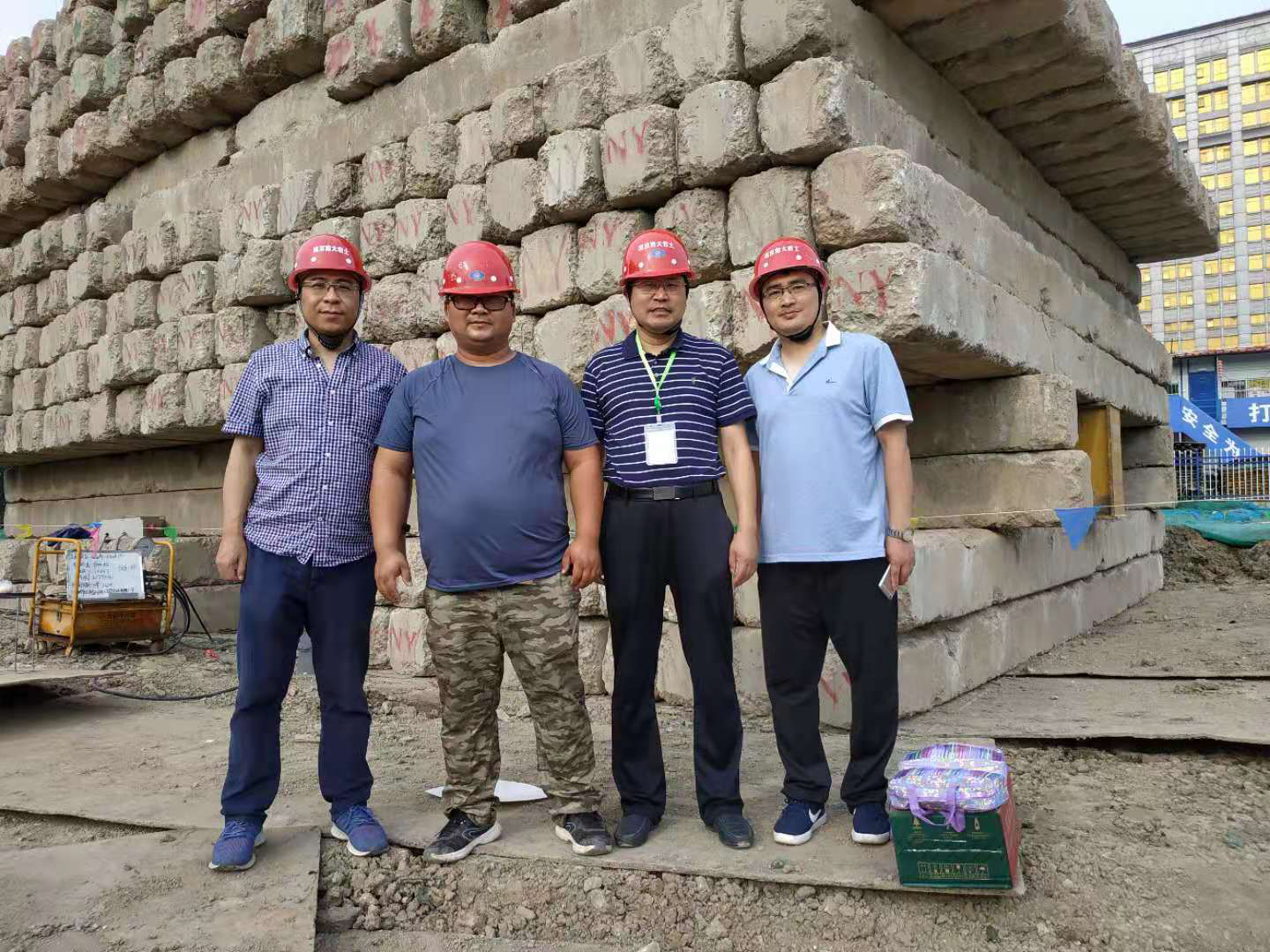 李俊才、董志高、盧亮一行對江寧合金合成材料樁基檢測項(xiàng)目、地鐵七號線D7-TA02標(biāo)監(jiān)測項(xiàng)目、江北新區(qū)大新小學(xué)樁基檢測項(xiàng)目、北斗水環(huán)境樁基檢測項(xiàng)目上的工作人員送上了防暑降溫用品、礦泉水等慰問品,關(guān)切詢問了一線作業(yè)人員的生產(chǎn)生活情況。隨后,走進(jìn)每一個(gè)工地現(xiàn)場和現(xiàn)場辦公、休息場所,詳細(xì)詢問了檢測或監(jiān)測項(xiàng)目現(xiàn)場工作的進(jìn)展情況,并對檢測工地的自動化采集上傳系統(tǒng)、現(xiàn)場資料整理、安全技術(shù)交底記錄、現(xiàn)場采取的安全措施等進(jìn)行了檢查,并叮囑夏日炎熱,一定要抓好現(xiàn)場的安全工作,確保人身和項(xiàng)目生產(chǎn)安全??偨?jīng)理李俊才一直關(guān)心現(xiàn)場項(xiàng)目部制度上墻的標(biāo)準(zhǔn)化問題,在地鐵七號線D7-TA02標(biāo)項(xiàng)目部,對項(xiàng)目部制度上墻的標(biāo)準(zhǔn)化提出了建設(shè)性的意見和合理化要求,并指出標(biāo)準(zhǔn)化的工作要加快落實(shí)(見照片1~4)。